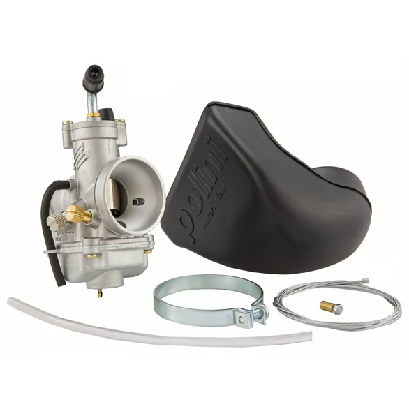 El Polini CP 24 es un carburador compacto y ligero, fabricado en aluminio, con un peso hasta un 40% menor que los carburadores tradicionales. Su diseño y configuración refinada garantizan un rendimiento excepcional en todo el rango de revoluciones, optimizando la respuesta del motor y reduciendo el consumo de combustible.