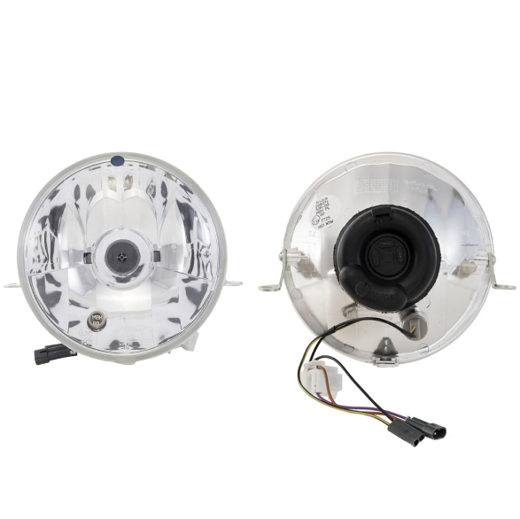 Faro halógeno original SIEM para Vespa PX Disco, adaptable a Vespa IRIS con una ligera modificación en los cables del portalámparas.