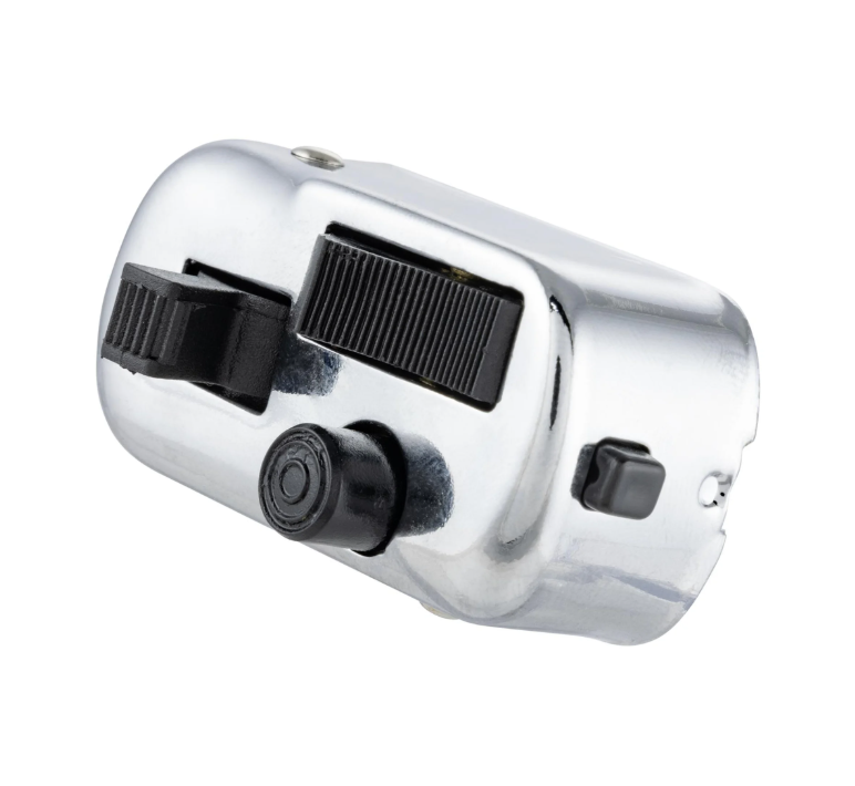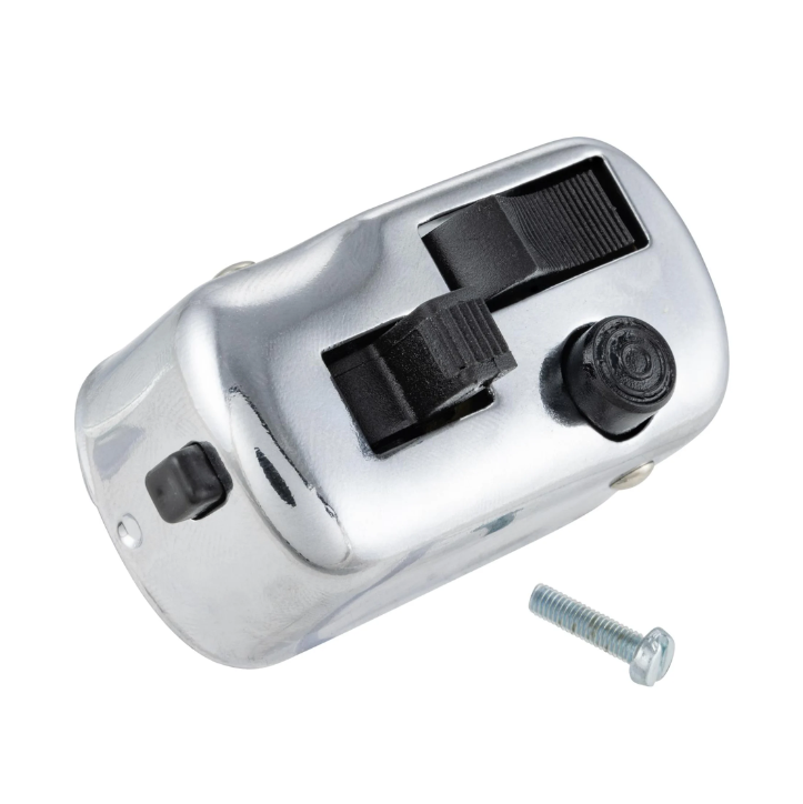 Conmutador SIP cromado de alta calidad para modelos clásicos de Vespa. Ofrece un funcionamiento preciso, estética original y un montaje directo, incluyendo además la tecla para cuentarrevoluciones SIP.