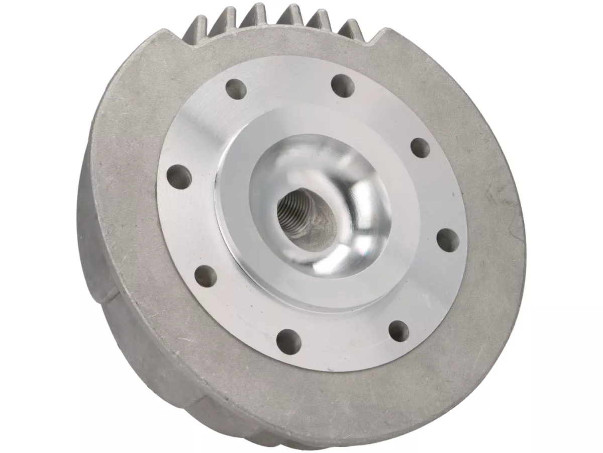 - Culata de aluminio con diseño específico de aletas para mejorar la refrigeración, banda de compresión empotrada y 8 puntos de fijación.
