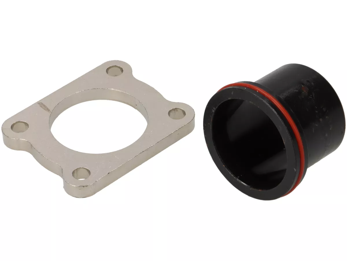 - Colector de escape en acero galvanizado atornillado al cilindro, con junta tórica de Viton para un sellado perfecto.